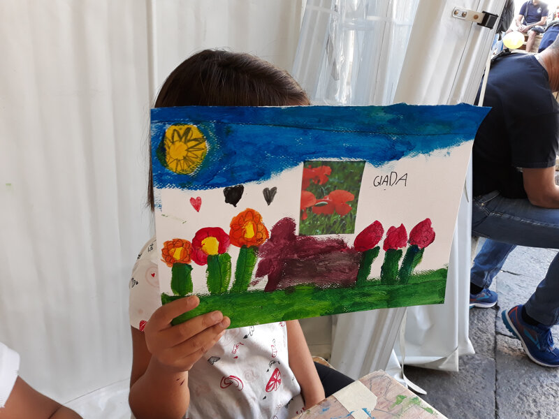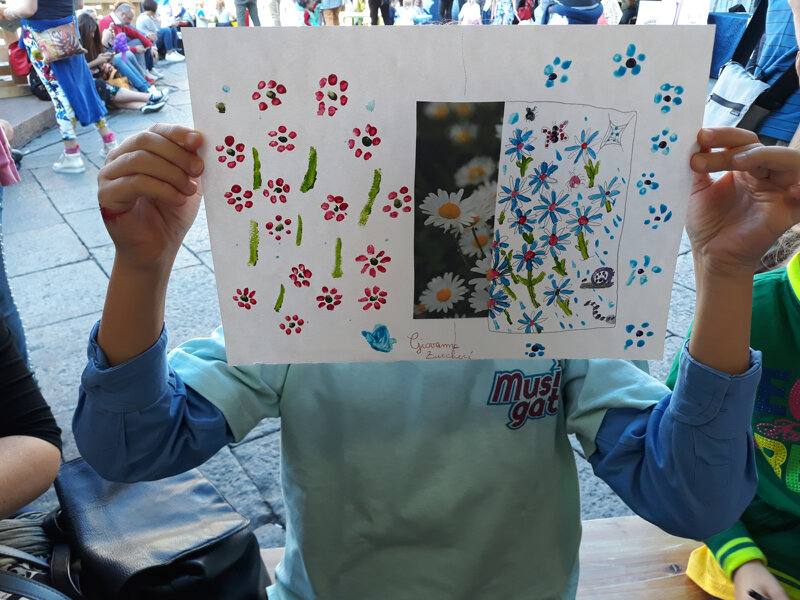 Nei Laboratori li lascio liberi di creare, inserendo qualche nozione di disegno e colore.
